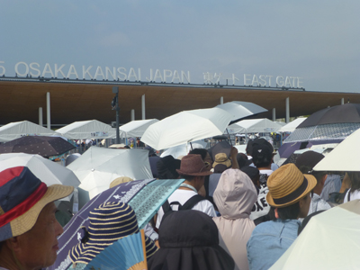 万博は2度行き、もういいやって思っていたのだが、万博に連れて行ってほしいという要望を受けた。それで、自分も行く気になり、今回は2人連れでの訪問。自分の訪問していない館を回ることにするが、待つ場合は20分程度を限度にして、長い行列はパスする。 9時入場はとれず、10時入場を予約。1人であれば、9時前に到着して、10時入場者の列の先頭を目指すと思うが、今回は同行者がいる。それで、なるべく並ばなくてすむようにという考えで、10時入場の列がある程度、短くなるであろう10時30分ころにゲート前に到着。 すでに、10時入場の列はかなりはけていて、15分ほど並び、入場できた。 |