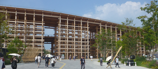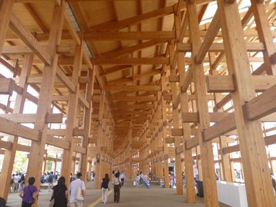 上 前回は雷雲が発生ということで、雨は降らなかったが、大屋根リングに上ろうとしていた夕方に上がれなかった。今回は上って、半周ほど歩く計画をしている。左 昼食はスペイン館でとるつもりだ。前回、スペイン館は入場したが、そのときレストランで入りたいと思ったが、食事時間に合わなかったので、今回は、そのリベンジのつもり。大屋根の下を歩いてスペイン館をめざす。 |