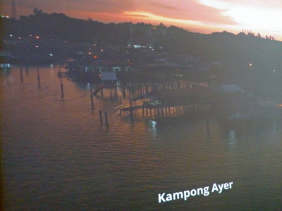 ブルネイの映像より。ブルネイを訪問したさい、印象に残っているのは、水上集落を回るボートに乗船したことだ。その水上集落が映っていたので、懐かしかった。 |