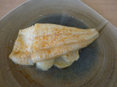 ヒラメのビルバオ風。2019年だが、サン・セバスティアンに滞在中の1日、郊外の漁村ゲタリアへ魚を食べに行った。食べたのはヒラメ。 ビルバオもサン・セバと同じバスクなので、調理法も同じなのだろう。懐かしくなって、ヒラメにした。肉や鶏のメニューもあったが。美味しくて、同じ味つけだったことを思い出した。 |