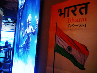 国名はバーラトで統一されていた。伝統工芸やヒンドゥー美術の展示と宇宙開発など先端技術の展示。 |