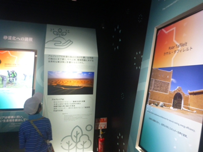 砂漠での生活や砂漠での資源開発、砂漠の緑化など砂漠に関する展示が中心。 |