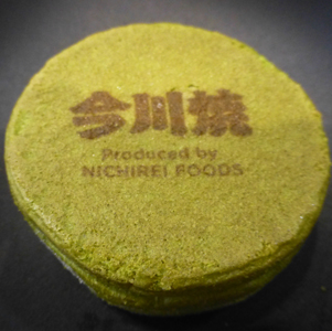 店内。(ぼかしてある)下左 冷凍の抹茶味の今川焼を半解凍したもの。ニチレイは、冷凍の今川焼を市販しているが、抹茶味のものは万博専用のようだ。 下右 アセロラMixスムージー。市販されているとは知らなかった。 |