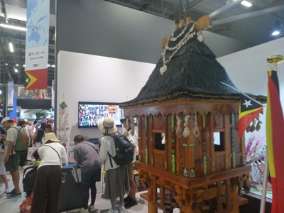 東ティモールのブース。古来の文化は。周囲のインドネシアの島と違わない感じだが、インドネシアから独立したという意気込みも感じられる。 |