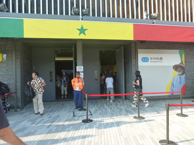 セネガル館。並ばずに入れた。この隣のエジプト館は2時間待ちでパスしたので、すごい差だ。 |