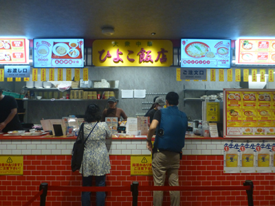 18時30分ごろ、フードコートへ。19時19分から花火があるので、それまでに夕食をすまそう。混んでいるフードコートの場合、2人いると便利だ。 |
