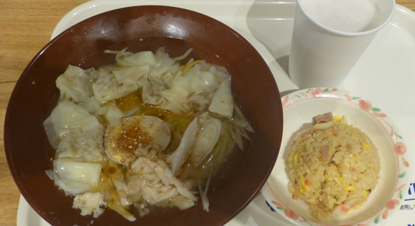 大阪の有名中華屋の「ひよこ飯店」が出店していて、ここにする。下 冷しワンタンメンの半炒飯セットと生ビール。 冷たい塩ラーメンでこんなのは初めて食べた。 |
