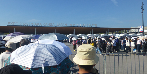 上 4回目の万博見学。3回目は同行者があり、その同行者からまた行きたいという希望があった。結局、同行者は行かないことになったが、自分が最後にもう1回行きたいと思うようになった。予約しようとすると、すでに10時入場はほとんどの日で不可能になっていた。わずかに残る10時入場のできる日を予約した。 できるだけ10時に入場したいので、9時に会場に到着。並んでいると、9時の人たちが入っていく。(写真で右の列) 左 10時入場でも、9時45分くらいから入場が始まり、自分も10時ちょうどに入場できた。 ミャクミャクも見納め。最初は気持ち悪く思っていたが、だんだん可愛くなってきた。 |