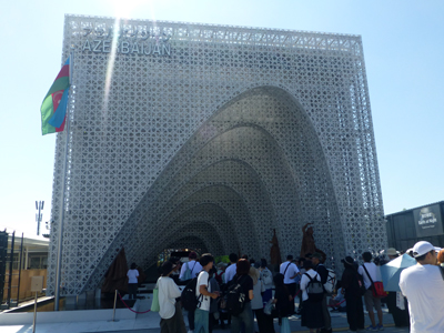 アゼルバイジャン館。12時ごろに並ぶ。30分で入館。 |