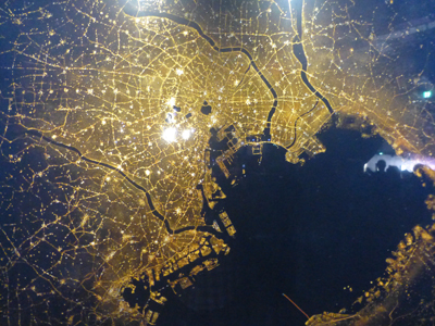 世界のいくつかの大都市の夜の上空からの写真は興味深かった。これは東京。 |