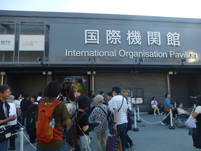 奇跡的に完全予約制じゃないのに、列ができていない国際機関館を発見。午後からは、今まで並ばずに入っていたコモンズでさえ、2,30分ほどの列ができていたので、貴重な館だ。 |