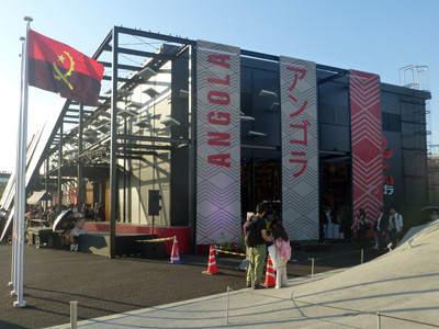 アンゴラ館はパビリオンの中では一番海に近いエリアにあるので、花火はよく見えた。下 花火が終わり、次はウォーターショーだが、パビリオンをもっと見たいのでパス。大屋根がライトアップされ美しい。 |