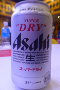 ソースをかけた状態。料理の説明として、シチューをかけた云々とあるが、液状じゃなく、煮込んだ豆と肉って感じ。 下左 豆と肉を引き上げたところ。 下右 アンゴラ産のビールは売り切れで残念。かわりにスーパードライ。 |