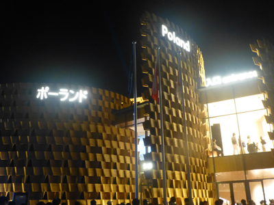 ポーランド館。20時ごろから並ぶ。これがこの日、最後のパビリオン、そして4度の万博訪問でも最後のパビリオンになる。 |