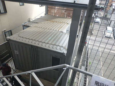 地下鉄・二条城前で下車。(11)SIKIAMI CONCON。長屋とコンテナハウスを融合させた実験住居といった感じ。長屋部分。 |