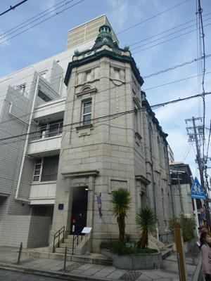 (22)顕道会館。西本願寺の教学施設。1923年竣工。玄関の半円形の3連入口が印象的。 |