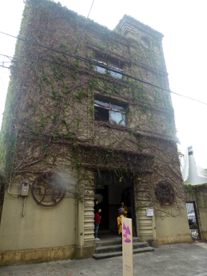 1階内部。このあと4階まで上り、下ってみた。昔は寮であったようだ。部屋の一部を利用して現代アートの展示が行われていた。 |