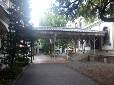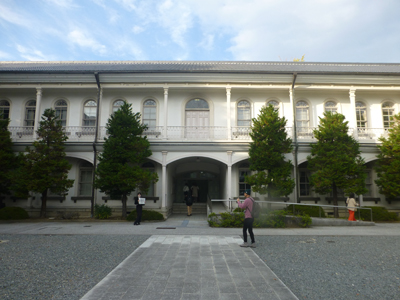 本館。1879年竣工。木造石張り建築で唯一現存という。 講堂や明治天皇が行幸で休息の貴賓室を見たが、内部は撮影禁止だった。 |