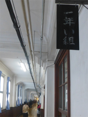 教室の札と廊下。 |