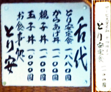 今やあまり見ない「舌代」。昼食時は、とり安定食が1100円と、丼と同額になるようだ。今回は、定食にしよう。 |