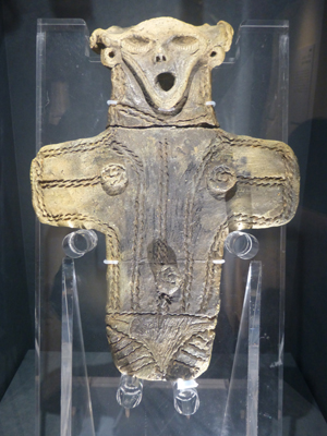 板状土偶。1枚の板になってる土偶。こんなのもあったんだ。青森市の三内丸山遺跡出土。ここの博物館は行ったので、現地では多くの展示品の中で見落としたのかな。 |