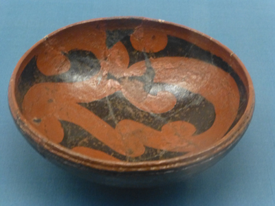 漆塗の彩文土器。漆塗をしていたことに驚き。亀ヶ岡遺跡出土。 |