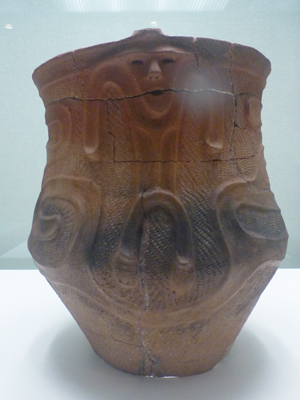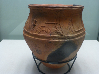 人体の文様がある土器。このようなのは初めて見る。こんなのがあったとはびっくり。福島市の和台遺跡出土。 |