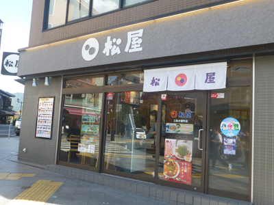 松屋は全国展開している店だが、自分の行動範囲にはあまりない。また、ファーストフードはあまり利用しない。マクドナルドや吉野家も、それぞれ数年に1回程度。それで、初めて松屋に入店。今回は、松屋で肉吸いがメニューに加わったと知り、食べてみたくなったのだ。文博に行く前、12時すぎに三条木屋町店に行った。 |