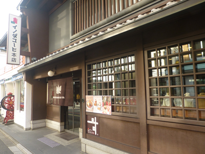 文博をでて、イノダコーヒ三条店に向かった。混んでいたので、200mほど離れた本店へ。こちらは表は昔ながらの商家の店構えを残している。 |