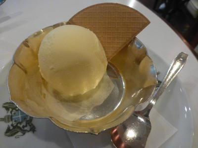 レモンパイを注文したら売り切れで、レモンアイスにした。バニラアイスにほのかにレモン味がする感じ。 |