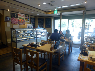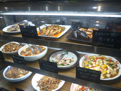 店内。ショーケースが見える。この店では、お惣菜のお持ち帰りもしているのだ。 |