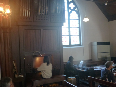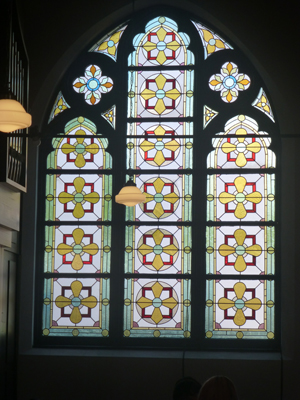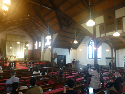 (23)Stアグネス教会。平安女学院の敷地にある礼拝堂だが、日本聖公会京都教区の教会でもある。 1898(明治38)年竣工で、京都に現存するキリスト教会では。最古。3つの部分からなるが、非対称であるのが珍しい。 |