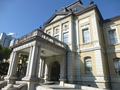 旧本館の玄関。上にはバルコニーがある。 |