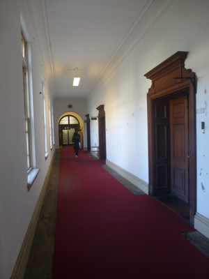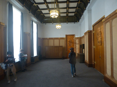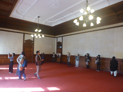 公開されていたのは貴賓室。3階にあり、部屋の表示もないので、外部からはわからない。調度品がないので、貴賓室の感じはしなかった。 |