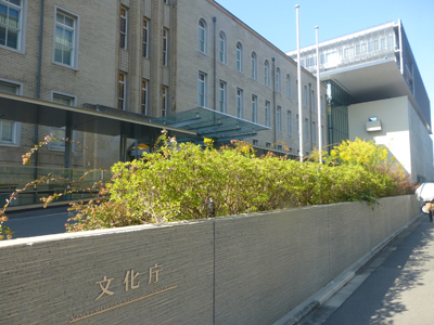 文化庁は、京都府庁の中にある感じ。京都府庁の第3号棟が文化庁。もとは京都府警本部だった建物。府警本部は別棟に移転。 |