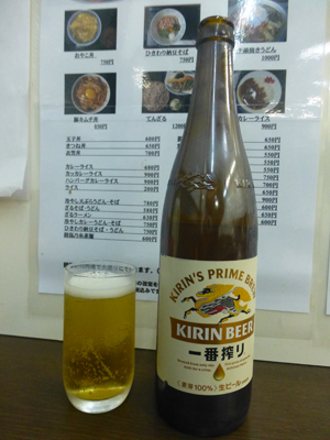 ビール大瓶。大650円、中600円と大瓶が相対的に安く感じたので大瓶をいただいた。 |