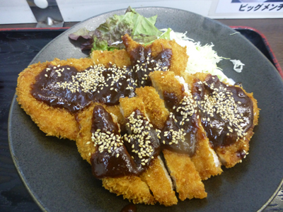 トンカツ2枚というのが特徴。1100円だが、1枚だと950円ということで、2枚目が安く7なっている。 |