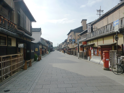 花見小路を南へ。1ヶ月ほど前の歌舞練場の見学から、そんなに間が開いていないが、前回は混雑で歩くのが大変なくらいだったのに、今回はがらがら。まだ10時だからなのか、寒くなったからか、中国人観光客の来日が減っているからか。 |