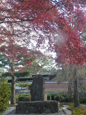 紅葉の下に「茶碑」がある。臨済宗建仁寺派を開いた栄西は、茶を日本にもたらした。それで「茶碑」も設置されている。 臨済宗は、多くの派があり、建仁寺派のほか、妙心寺派、大徳寺派、南禅寺派、東福寺派などがある。それらをまとめる総本山はない。臨済宗の開祖は栄西だが、現在、最大の派は妙心寺派。 |