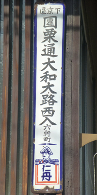 昼食は、南座横の「松葉」でにしんそばを食べるつもりだった。朝、祇園四条で下車し、南座出口からでたあと、「松葉」で店頭のメニューを確かめもした。建仁寺を出て「松葉」に向かったが、仁丹の古い住所表示板を発見。 注目すべきは、最上部の「下京区」。この付近は、現在は東山区なのだが、東山区が下京区から分区したのは1955年だから、この表示板も1955年以前のものだとわかる。 |