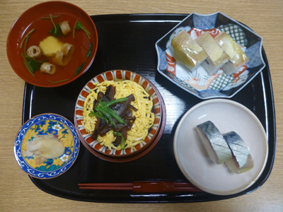 上 「千登利亭」(ちどりてい)。帰宅後、HPを見ると、創業100年以上の老舗だった。 左 京寿司の定番、鯖寿司や初めて見た、かます寿司も食べてみたい。 |