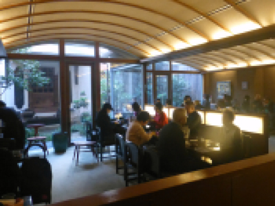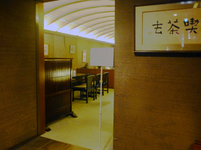喫茶コーナーに入るには2、3分待っただけ。「喫茶去」は、お茶を飲んでいきなさい、の意味。 |