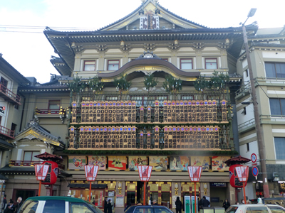 まねきがかかる南座。この前にある出入口から京阪・祇園四条駅へ。 |