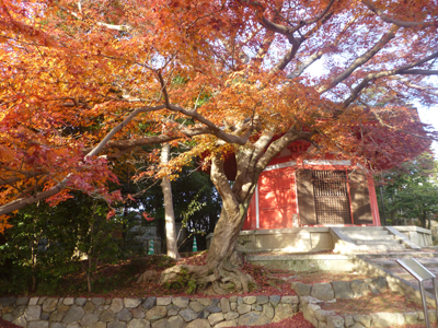愛染堂。建物が朱塗りで、紅葉とよくあっている。 |