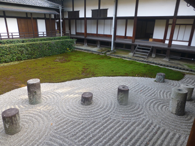 北庭。パンフレットの写真を見ると、時期によっては、苔がもっと盛り上っていてもっと美しい。 |