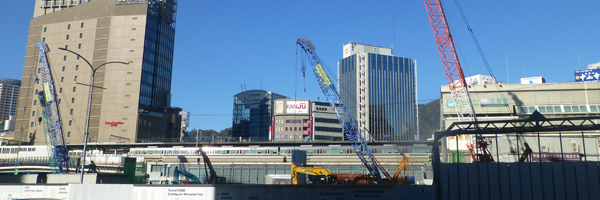 何年か続いている駅ビルの工事が新段階になったのか、駅前海側の歩行ルート変わっていて、神戸市博には遠回りになるが、見ておくことにした。下 駅南側の駅ビル建設現場。今は地下の基礎工事などをしているのだろう。 |