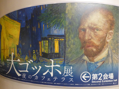 2階に下りて、第2会場へ。こちらでは何作品かが撮影可。入場すると会場内に列ができている。何なのか聞くと、「夜のカフェテラス」を最前列で写真をとるための列だという。一通り展示室を見た後、20分ほど列に並んだ。 |