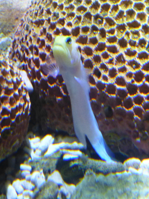イエローヘッドジョーフィッシュ。これもかわいい顔をしている。オスが卵を口の中に入れて、ふ化するまで保護するのだという。 |