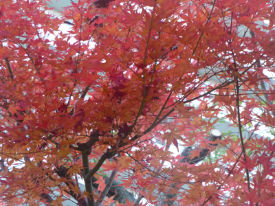 神社の北側の生田の森を少し歩く。1本だけ紅葉が残っていた。 |