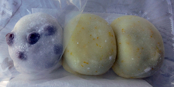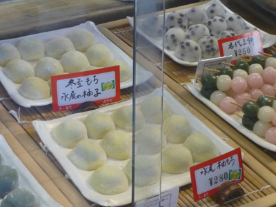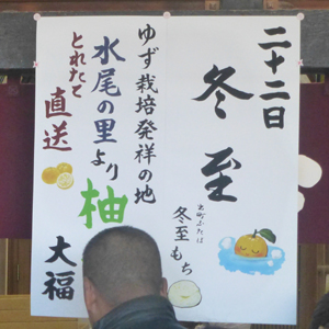 この日は12月22日の冬至を前にして「冬至餅」。ゆずを餅に練りこんだ大福だ。 |